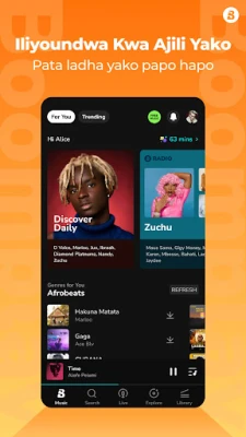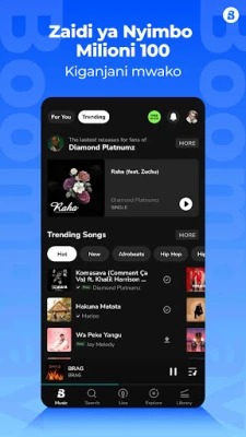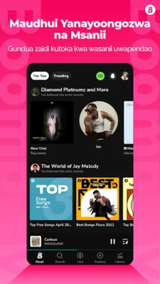 Kuna ulimwengu wa sauti usio na kikomo unaokusubiri ndani ya Boomplay. Fumbua pazia la maktaba kubwa yenye zaidi ya nyimbo milioni 100, ikijumuisha lulu adhimu za muziki wa Kiafrika kutoka kwa wasanii mashuhuri kama Diamond Platnumz na wengine wengi, sambamba na vibao vikali vya kimataifa. Boomplay inajitofautisha kwa uwezo wake wa kutambua ladha yako ya kipekee, ikikupa mapendekezo mahiri ya orodha za kucheza na nyimbo utakazopenda, zilizoratibiwa kikamilifu kulingana na matakwa yako. Kila mdundo, kila wimbo, unahakikisha safari mpya ya kigunduzi cha muziki, iwe unapenda Bongo Flava, Amapiano, Hip Hop, au R&B.