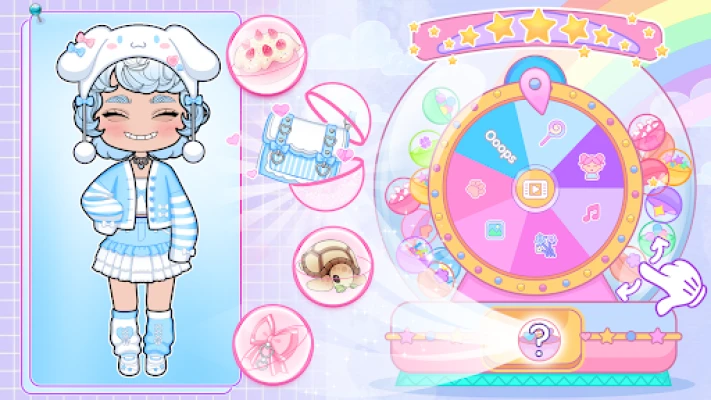 Anza safari ya ubunifu isiyo na kikomo na mchezo wetu wa kipekee wa kuunda wahusika, ambapo ndoto zako za gacha zinatimia! Ingia katika ulimwengu wa kupendeza na uvumbue kipengele chetu kipya kabisa – GURUDUMU LA GACHA. Zungusha gurudumu la bahati kila siku ili ujishindie mavazi ya kipekee na vifaa adimu vinavyopanua kabati lako la nguo. Ukiwa na zawadi hizi mpya, unaweza kubuni na kubadilisha mhusika wako wa gacha kwa urahisi, akionyesha mtindo wako wa kipekee. Unda picha za kupendeza za wanasesere wako wa chibi, zihifadhi kwenye kifaa chako, na ushiriki furaha na marafiki zako katika ulimwengu huu wa michezo ya kufurahisha ya gacha.