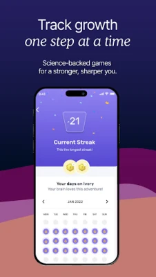 Gundua uwezo kamili wa ubongo wako kupitia mfumo wa kisasa wa mafunzo ya akili unaotolewa na Ivory. Utapata fursa ya kujua "umri wako wa utambuzi" kupitia tathmini mahiri na michezo ya ubongo iliyoundwa kisayansi. Kwa zaidi ya michezo 50 ya kufurahisha, Ivory inatoa mazoezi yanayojirekebisha kulingana na kiwango chako cha ujuzi, kuhakikisha uboreshaji endelevu katika kumbukumbu, umakini, na utatuzi wa matatizo. Michezo hii imelenga kuimarisha uwezo wa kukumbuka, kuongeza umakini, na kuboresha utendaji wa utambuzi, ikiwa ni njia ya kufurahisha ya kuupa ubongo wako mazoezi muhimu popote ulipo.
